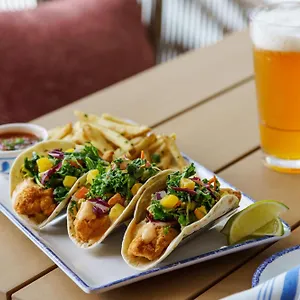 Guests can enjoy American meals at Stewby's Market within 7 minutes' walk of the property.