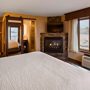 Guest rooms are equipped with a work desk, as well as a stone fireplace for guests' comfort. They are outfitted with traditional decor.