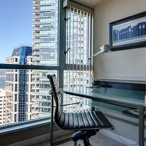 The area features a number of shopping sites such as Waterfront Centre within walking distance of the 35-story property.