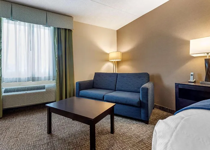 There are 69 air-conditioned rooms at the Comfort Inn & Suites, some of them feature a carpeted floor, along with such conveniences as Wi-Fi and a flat-screen TV with satellite channels. Guests can also make use of a tub and a shower, as well as comforts such as a hair dryer and free toiletries.