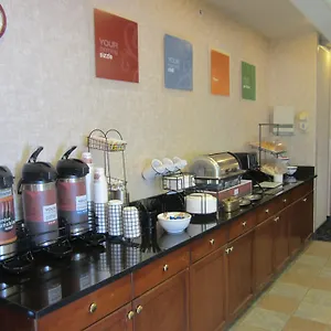 The Comfort Inn North offers buffet breakfast with meat, eggs and fresh fruits.