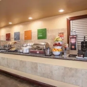 The family Comfort Suites serves a free breakfast daily. There is a lounge bar onsite. Panera Bread is close to this Elgin property.