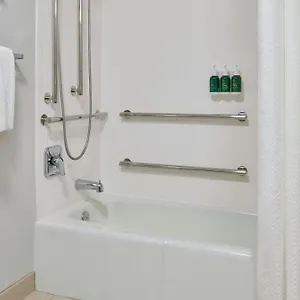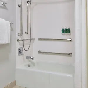 Looking onto the street, some rooms at Courtyard By Marriott Indianapolis Castleton Hotel offer a stone fireplace furnished with a writing table. Guests can use a separate toilet together with a hairdryer. Looking onto the garden, the house features kitchenette with a dishwasher, a coffeemaker and a refrigerator.