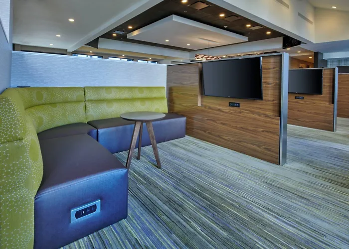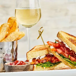 This Indianapolis hotel serves American cuisine on site at Eat Drink Connect restaurant. There is a bar serving American food 250 metres away.