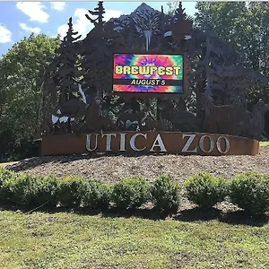 The round Utica Zoo is set within 2.5 km of the 3-star Doubletree By Hilton Utica Hotel, which boasts fitness classes, various recreational opportunities and a golf course. The non-smoking hotel lies in a business area, within close distance of such cultural sights as the oriented Utica Children's Museum.