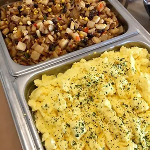 Each morning a free vegetarian breakfast is served in the lobby.