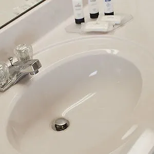 Offering amenities such as hair dryers, the bathrooms also feature a shower/bath combination and a sink.