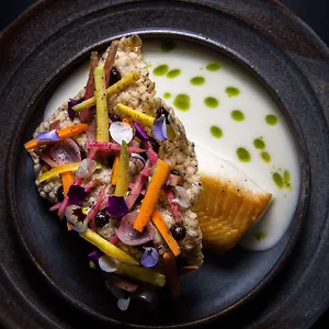 Overlooking North Shore Mountains, the modern Fairmont Pacific Rim offers an executive breakfast every day. Botanist, an onsite restaurant, is open for brunch. To cater to every palate, it offers a vegetarian menu. This Vancouver hotel invites guests to have a drink at a garden bar. There is a bar serving American food about 5 minutes' walk away.