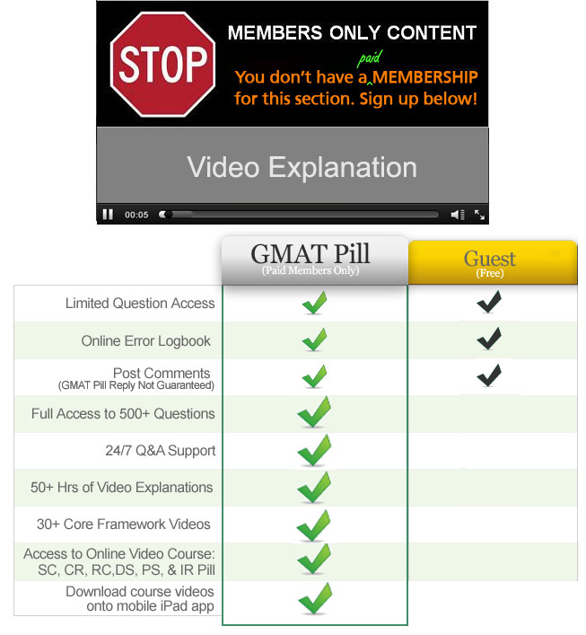The GMAT Pill Practice Test is a free addition to the GMAT Pill Online course. All existing paid members have access. That said, if you are a new user and have yet to discover the top-rated online course (GMATPill), which boasts rave reviews from students helping them psychologically and strategically score above their normal GMAT score range, then you can click the "Signup Free" button above.