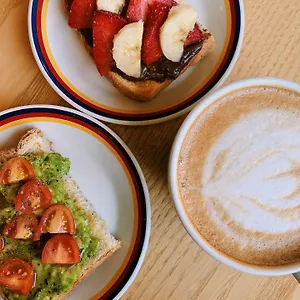 Guests can try breakfast, usually served at one of the on-site restaurants, for example at Poindexter Coffee. There is a restaurant serving American food nearly a 5-minute walk away.