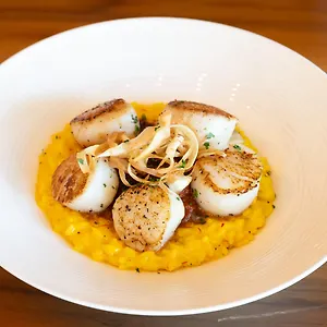 The daily dining options include a made-to-order breakfast. Signature drinks and snacks can be ordered in the espresso bar. It overlooks the lagoon. The restaurant Patio Cafe is about a 20-minute walk from the hotel.