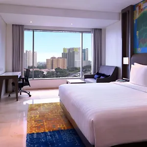 The 5-star Grand Mercure Jakarta Kemayoran is situated in Central Jakarta, where you 'll find Galeri Indonesia Kaya, an art gallery that showcases contemporary Indonesian artists, and Alun Alun Indonesia, a department store selling local Indonesian products ranging from figurines, furniture, postcards, and even tea, 10 minutes' drive from Atlantis Water Adventure and features 503 rooms with views of the city. This Jakarta hotel, located within 10 minutes' drive of the well-known obelisk "National Monument", boasts a swimming pool along with a steam room, a Jacuzzi and an outdoor swimming pool.