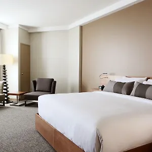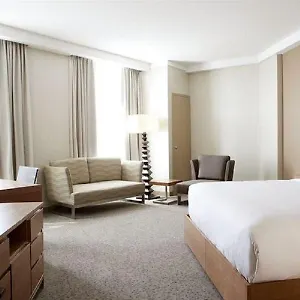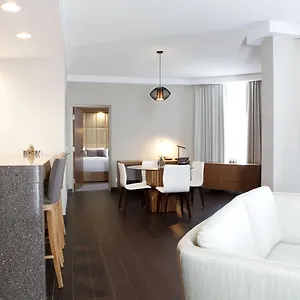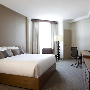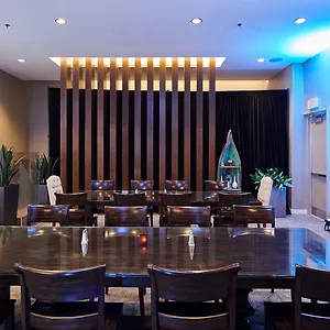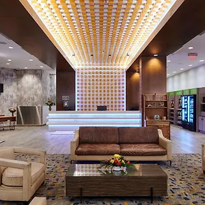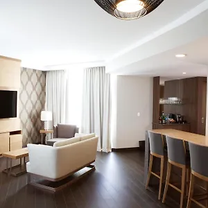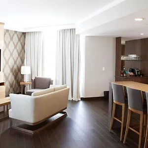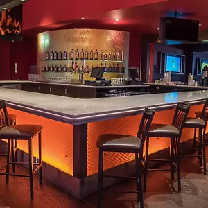 This Calgary hotel invites guests to have a drink at a lounge bar.