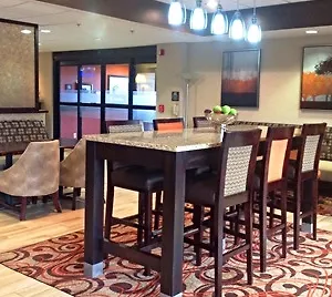 A buffet breakfast is offered at the Hampton Inn. Guests can dine at the restaurant Papa John's Pizza, which is just 5 minutes' walk away.