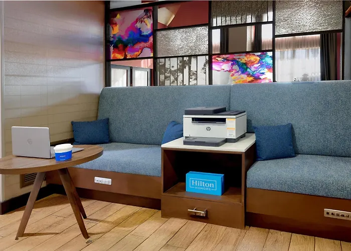 The accommodation provides a community pool and a golf course for an extra charge. The Hampton Inn & Suites offers a gym as well as a spa salon for guests to enjoy their stay. There is a business centre available for corporate travellers.