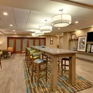 The Hampton Inn And Suites serves a hot continental breakfast. There is a snack bar onsite.