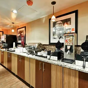 A day at the Hampton Inn Charlotte-Gastonia begins with a complimentary breakfast. The property is set close to the restaurant The HoneyBaked Ham Company & Cafe.