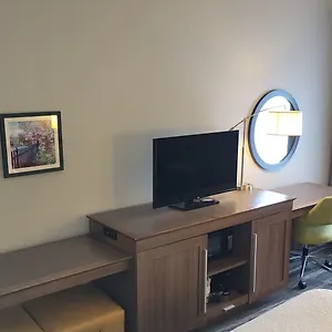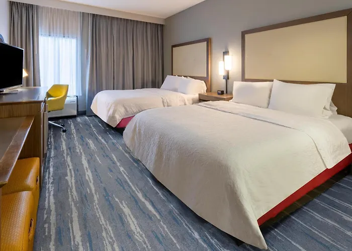 The Hampton Inn has a seasonal outdoor pool and a gym. The accommodation includes a meeting room equipped with a xerox and a work desk.