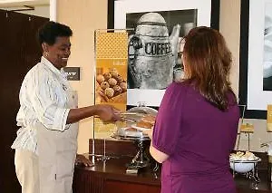 Each morning, the Hampton Inn serves a buffet breakfast. You may walk 7 minutes to Villa Fiesta or eat by Logans Roadhouse, located just 500 metres away.