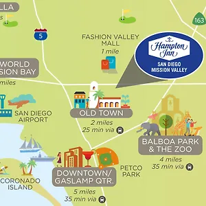 The Hampton Inn San Diego Mission Valley is placed about 10 km from San Diego International airport and within 4.4 km of such cultural venues as the large San Diego Natural History Museum. San Diego Zoo is set within 10 minutes' drive of this 3-star property.