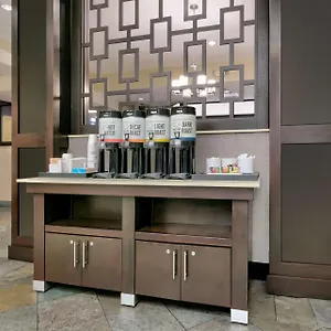 The Hampton Inn offers a buffet breakfast daily. The quick bites McDonald's is about a 5-minute walk away.