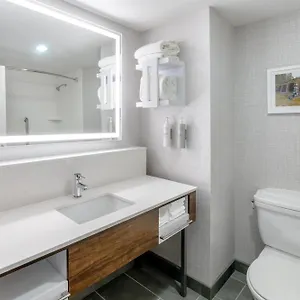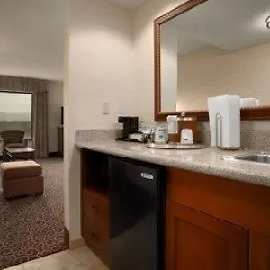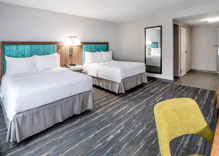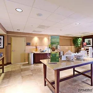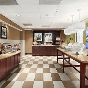 The Hampton Inn offers a free breakfast every day. Guests are invited to the onsite lounge bar to unwind with a drink.