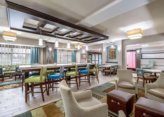 The 3-star Hampton Inn West Columbus, about 10 minutes' drive from Concordia Lutheran Church features fitness classes and various recreational opportunities. Placed in the West Columbus district of Columbus, the inn is situated within a 10-minute drive of Lincoln Village Plaza Shopping Center, which is good for shopping lovers.