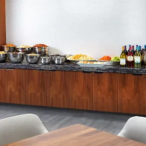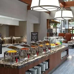 Each day at the Hilton Club District Washington Dc starts with a free buffet breakfast. The property is set around a 5-minute stroll from the café Orange Spoon.
