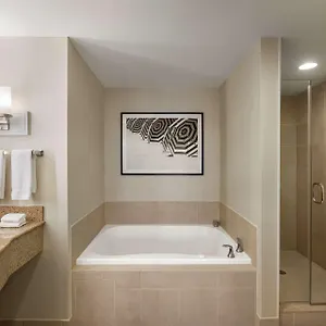 The 121 rooms at Hilton Garden Inn Palm Coast Town Center are equipped with comforts such as ironing facilities and air conditioning, as well as a cable TV with on-demand films. Certain units feature comfortable interior along with carpeted flooring. Providing a hot tub and a shower, some bathrooms come with a hair dryer and free toiletries. In addition, this Flagler Beach hotel also offers an apartment with a kitchenette including a microwave and fridges.