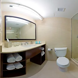 The upscale Hilton New York Fashion District features 280 rooms equipped with a flat-screen TV with satellite channels as well as coffee/tea making facilities. Guests can also use a roll in shower, along with such amenities as a hair dryer and complimentary toiletries. Certain units offer views of the skyline.