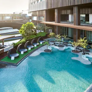 The contemporary Hilton Pattaya Hotel enjoys a beachfront location in the heart of Pattaya, a few metres away from the shopping mall "Central Festival Pattaya Beach". The 4-star luxury hotel, located around a 5-minute ride from Teddy Bear Museum, boasts an infinity swimming pool along with a treatment room, a hot tub, and locker rooms.