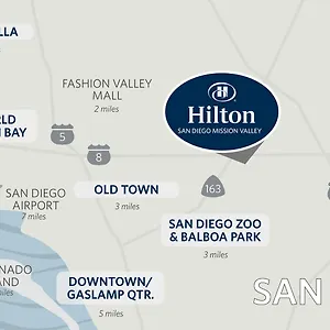 The 4-star accommodation is placed within a minutes' drive of Balboa Park. The area offers shopping experience such as the upscale Fashion Valley Open-Air Mall around a 10-minute drive from Hilton San Diego Mission Valley Hotel.