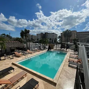 This St. Pete Beach hotel is in front of Screwie Louie's restaurant with its American dishes.