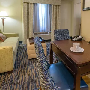 The rooms at the Homewood Suites By Hilton are fitted with carpeted floors and such comforts as an iron and ironing board, and air conditioner. Some of the spacious units also come with a microwave, a full-sized fridge and a coffee maker.