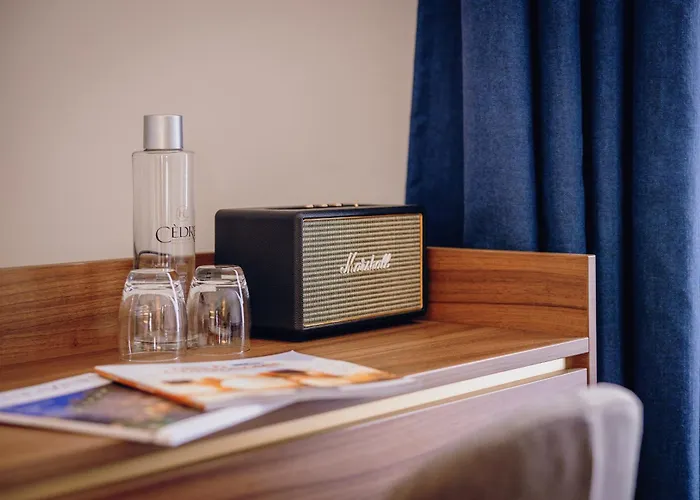 The elegant property is centrally placed near a train station. The Hostellerie Cedre & Spa is positioned in a popular area near old trees and a garden.