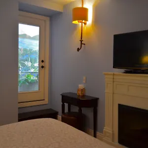 The rooms at the 1110 feature a sofa set and a writing table, along with a stone fireplace for guests' convenience. These units also have tile floors. Bathrooms include a spa bathtub and a separate toilet, along with comforts such as a hair dryer and bath sheets.