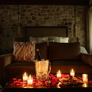 Looking onto the garden, some rooms at the property offer a fireplace furnished with a cupboard and a sofa set. For more comfort, a hairdryer and dressing gowns together with a Jacuzzi bath and a separate toilet are provided.