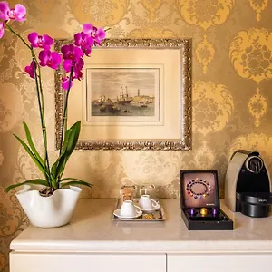 Some of the elegant rooms of this Venice property face the garden, and comprise a terrace and a seating area. Guests can use a Jacuzzi bath and a heated towel rail together with a hair dryer and slippers.