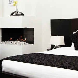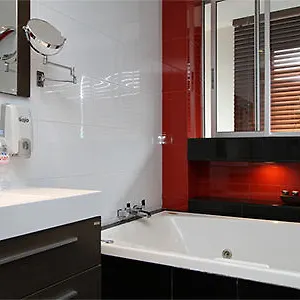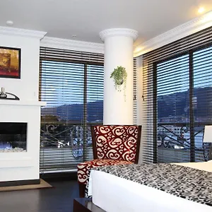 The spacious units include a balcony and a dressing room, furnished with a stone fireplace, and some of them face the mountain. A spa bathtub and an additional toilet, together with such amenities as hairdryers and shower caps, are also at guests' disposal. Additionally, there is a separate bedroom appointed with extra-long beds in every suite.