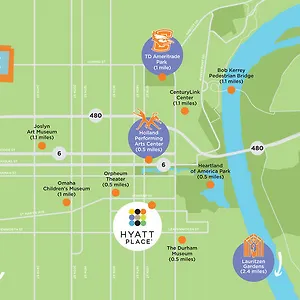 Visit ConAgra Lake, around 15 minutes' walk from the accommodation, and feel complete harmony with the nature of United States. Staying at the 3-star Hyatt Place Omaha/Downtown-Old Market, you can also enjoy natural sights such as the 9.6 - acre park "Gene Leahy Mall", which is just 550 metres away.