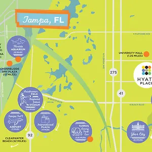 The hotel is placed just a short drive from Gardens Tampa Bay. There is the steel spinning Cobra's Curse Roller Coaster around 25 minutes' walk from Hyatt Place Tampa Busch Gardens.