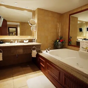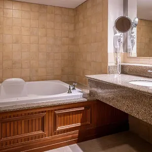 The private bathrooms are appointed with a bathtub and a shower, and such comforts as a hairdryer and guest toiletries.