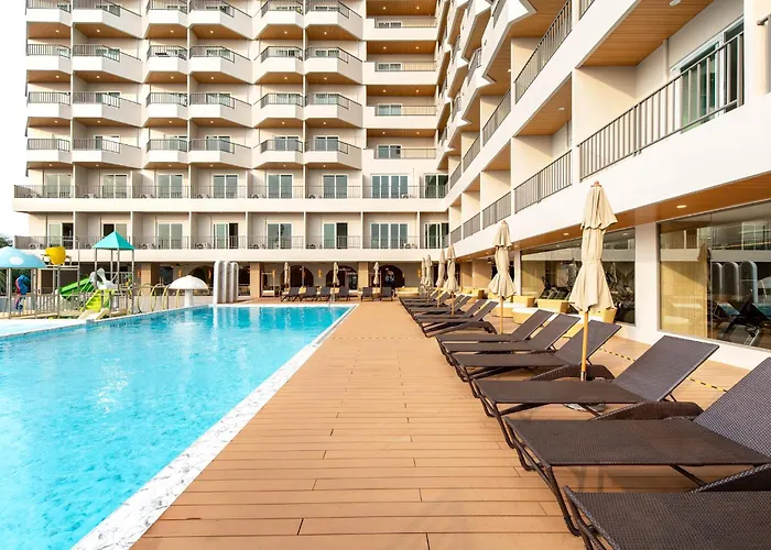 Offering fitness classes, massage therapy and a prime touristic area, the 4-star Jomtien Thani Hotel lies in a touristic area of Jomtien Beach, approximately a 5-minute drive from Three Kingdoms Park and within 15 minutes' drive of Pattaya Floating Market. Located a walk from D'Luck Cinematic Theatre, the hotel features 246 rooms with views of the sea.
