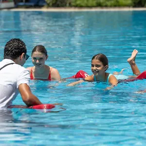 Some of the 430 quiet rooms as the accommodation face the beach and comprise a private balcony and a separate living area. They are appointed with a sofa and a writing desk, and also feature a minibar fridge, tea and coffee making facilities. The large bathrooms come with a hot tub, along with hairdryers.