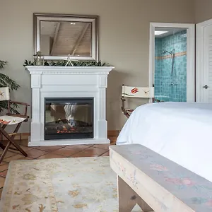 The spacious units include an adjoining terrace and a dressing room, furnished with a stone fireplace, and some of them face the sea. Guests can also use a walk-in shower, along with such amenities as hair dryers and towels.