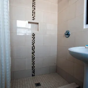 Guests can use a shower and a separate toilet together with towels.