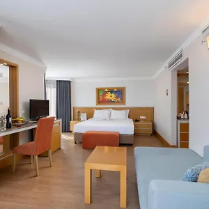 The à la carte Phaselis restaurant offers a menu of international cuisine. The accommodation has the poolside bar with a billiards table and karaoke.