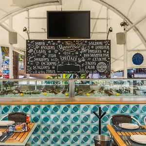 The Marina Fiesta Resort & Spa, A La Carte All Inclusive Optional offers an American breakfast daily. This accommodation features Los Deseos Restaurant & Cantina restaurant. The property has the swim-up bar with a billiards table and live music. There is a bar & pub|bar and pub serving international food about a 16-minute walk away.