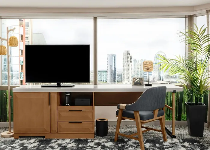 Featuring a bureau de change and a cash machine, the 4-star Marriott Marquis San Diego Marina Hotel is set just a few steps from the historical district of San Diego, 10 minutes' drive from San Diego Bay. Located a stroll from Seaport Village Shopping Complex, the upscale hotel with views of the city is well-known for its amenities including a treatment room, a hot tub and sauna facilities.