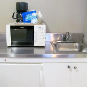 A microwave oven and a fridge are standard in these rooms.